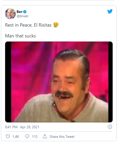 The moniker 'el risitas' or 'the giggles' came about when a clip of borja featured on a variety talk show went viral el risitas laugh. Probably the funniest meme i've ever done fun fact: